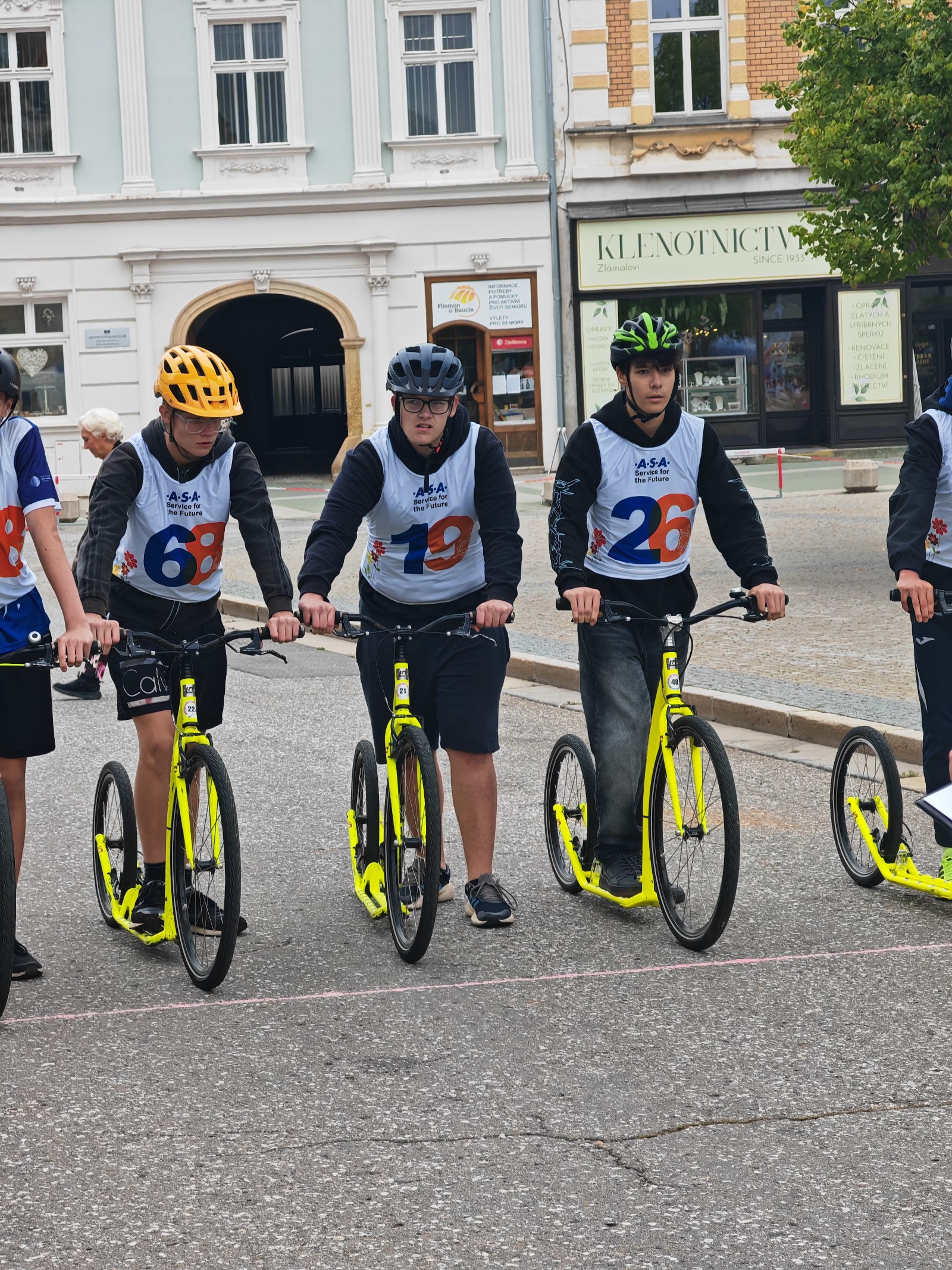 Ve čtvrtek 18. 9. 2025 se konal závod Prostějovská koloběžka, kde byl trasou jeden okruh kolem náměstí T. G. Masaryka v Prostějově. Školu reprezentovali vybraní žáci naší školy – z 9. třídy Laura Koudelková, Kristýna Bohuslavová, Karolína Leová, Veronika Franková a z 8. třídy Tadeáš Grepl, Ladislav Rus, Jan Páleníček, David Dostál. Soutěžilo se v závodech jednotlivců a v závodu štafet, kde kromě jízdy na koloběžce museli žáci rychle běhat a házet na cíl.