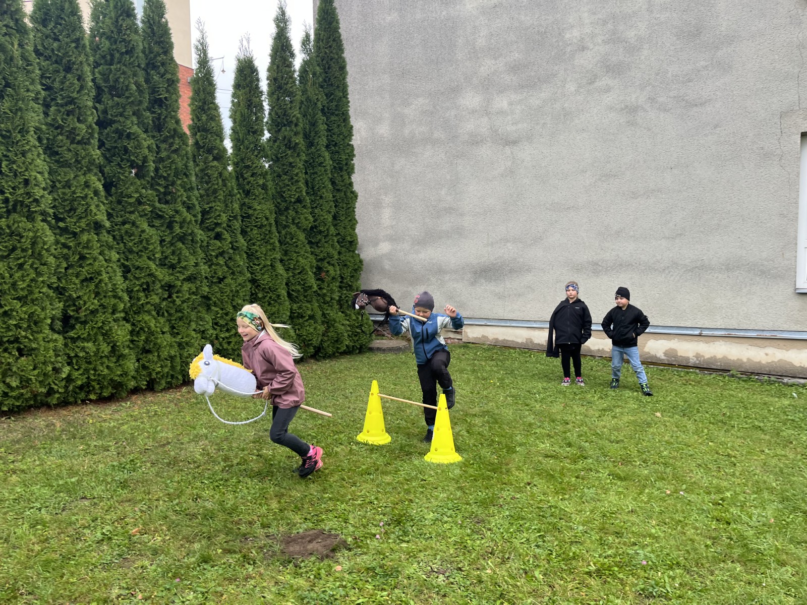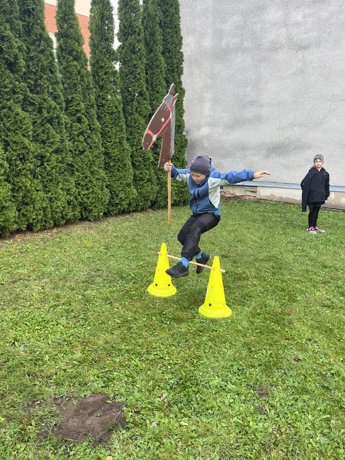 Vyvrcholením celého dne byla „Jízda na koni se sv. Václavem“ – sportovní jízda na hobby horse. Žáci si vyzkoušeli slalom, skoky přes překážky i drezuru, a to jak na vlastních konících, tak na těch zapůjčených. Vše probíhalo v radostné atmosféře a s velkým nasazením. Projektová výuka se vydařila a žáci si z ní odnesli nejen nové poznatky o patronovi české země, ale také spoustu zážitků, smíchu a radosti z pohybu.