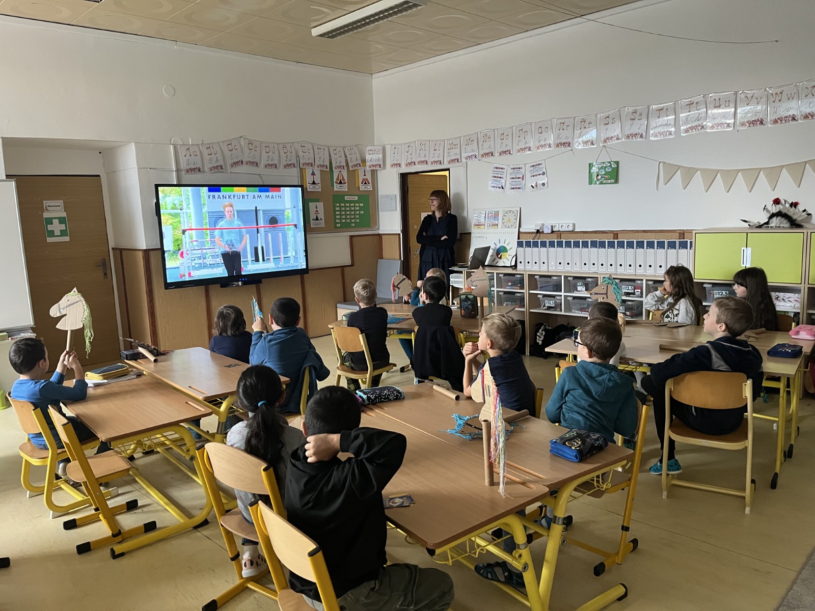 V rámci svatováclavských oslav jsme v pondělí 29. 9. uspořádali projektovou výuku s názvem „Hobbyhorsing se sv. Václavem“, která spojila poznávání historie s pohybem. Žáci se seznámili s příběhem sv. Václava, diskutovali o jeho životě a významu pro naši zemi a poznávali symboly, které se k této významné osobnosti vážou. Zároveň jsme si představili moderní sport hobbyhorsing, který žáky zaujal svou hravostí a možností aktivního pohybu.