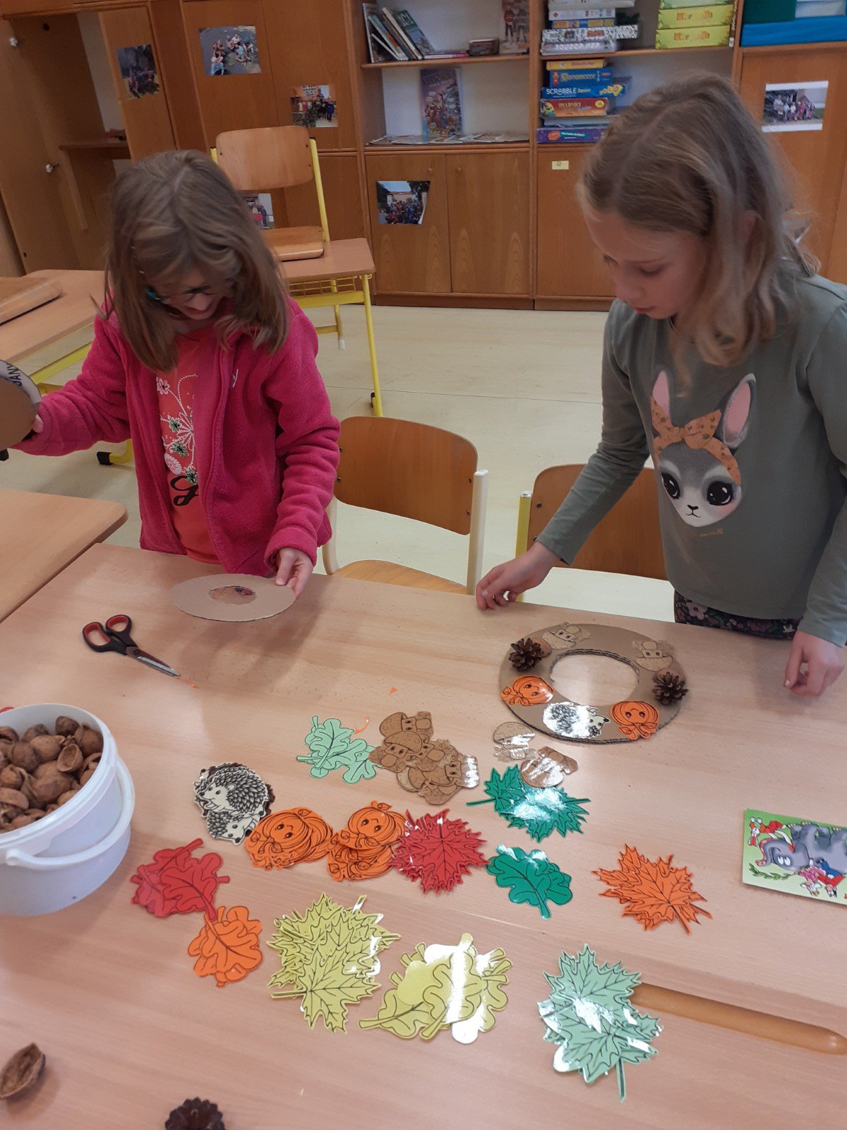 Slunečné zářijové počasí jsme si užili naplno – chodili jsme na školní zahradu a hřiště, kde děti sportovaly, soutěžily a hrály různé pohybové hry. Vypravili jsme se také na procházky do okolí školy, kde jsme spojili pohyb s pozorováním podzimní přírody. Nezapomněli jsme ani na tvoření. Děti vyráběly např. koně sv. Václava, strom školní družiny plný jmen, věnce a různé podzimní dekorace, které nám teď zdobí nástěnky. Září uteklo jako voda, ale přineslo spoustu krásných zážitků, nových přátelství a dobré nálady. Těšíme se na celý školní rok, který bude stejně pestrý, hravý a plný smíchu jako jeho první měsíc.