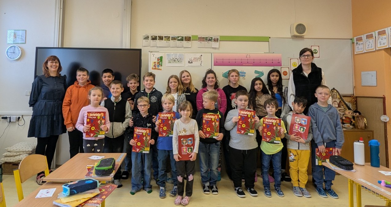Prvňáčci dokončili první díl učebnice Divíci. Už umí jedenáct písmen, dokážou přečíst krátká slova i jednoduché věty a mají za sebou spoustu poctivé práce. V úterý 9. 12. si užili „Slavnost půlení“, kde jim získané vědomosti pomohla zúročit jejich partnerská třída – šesťáci.