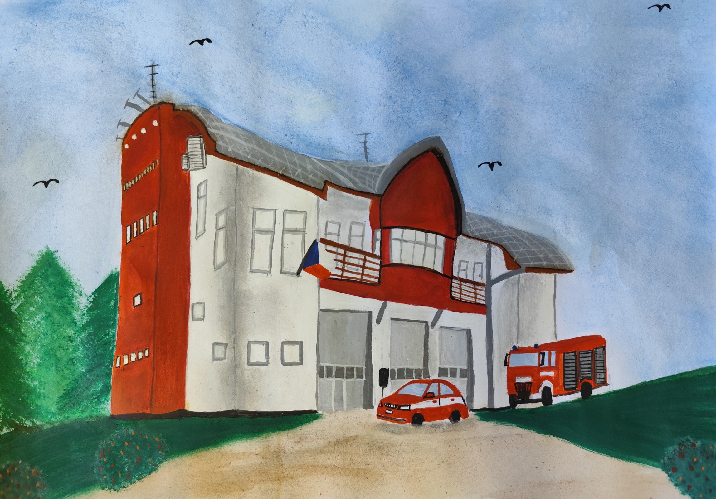 Renata Trundová (8. tř.), budova požární stanice v Konici, malba.