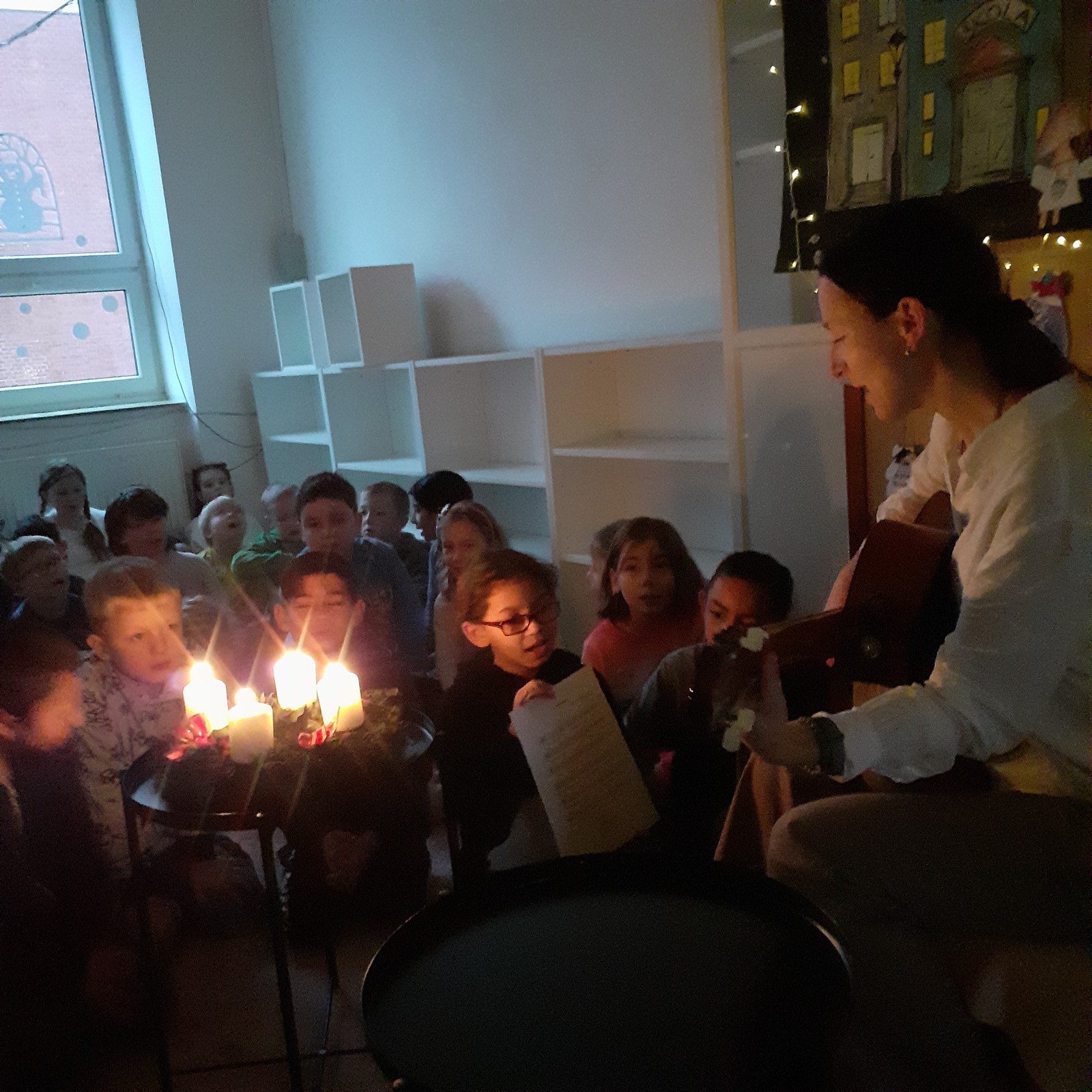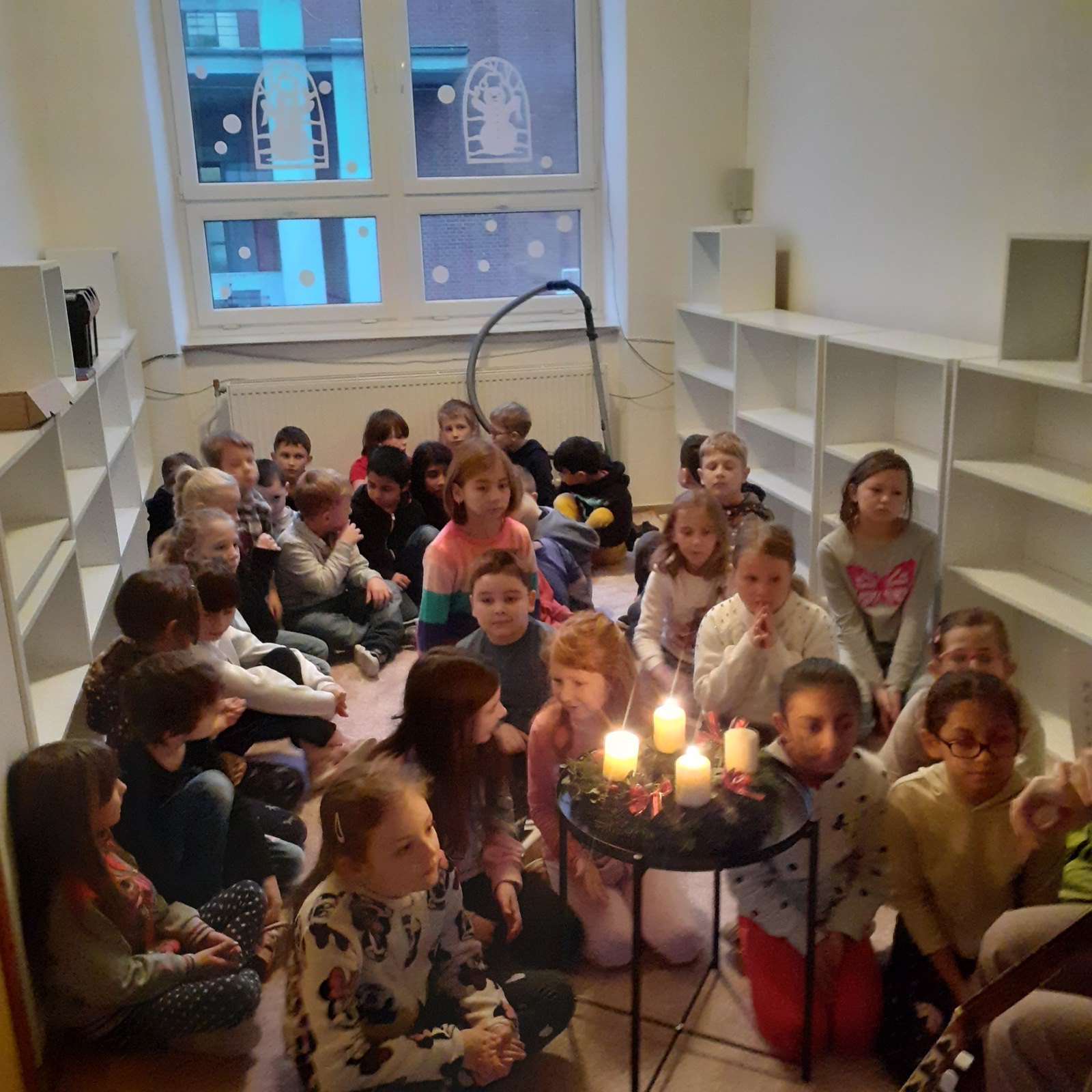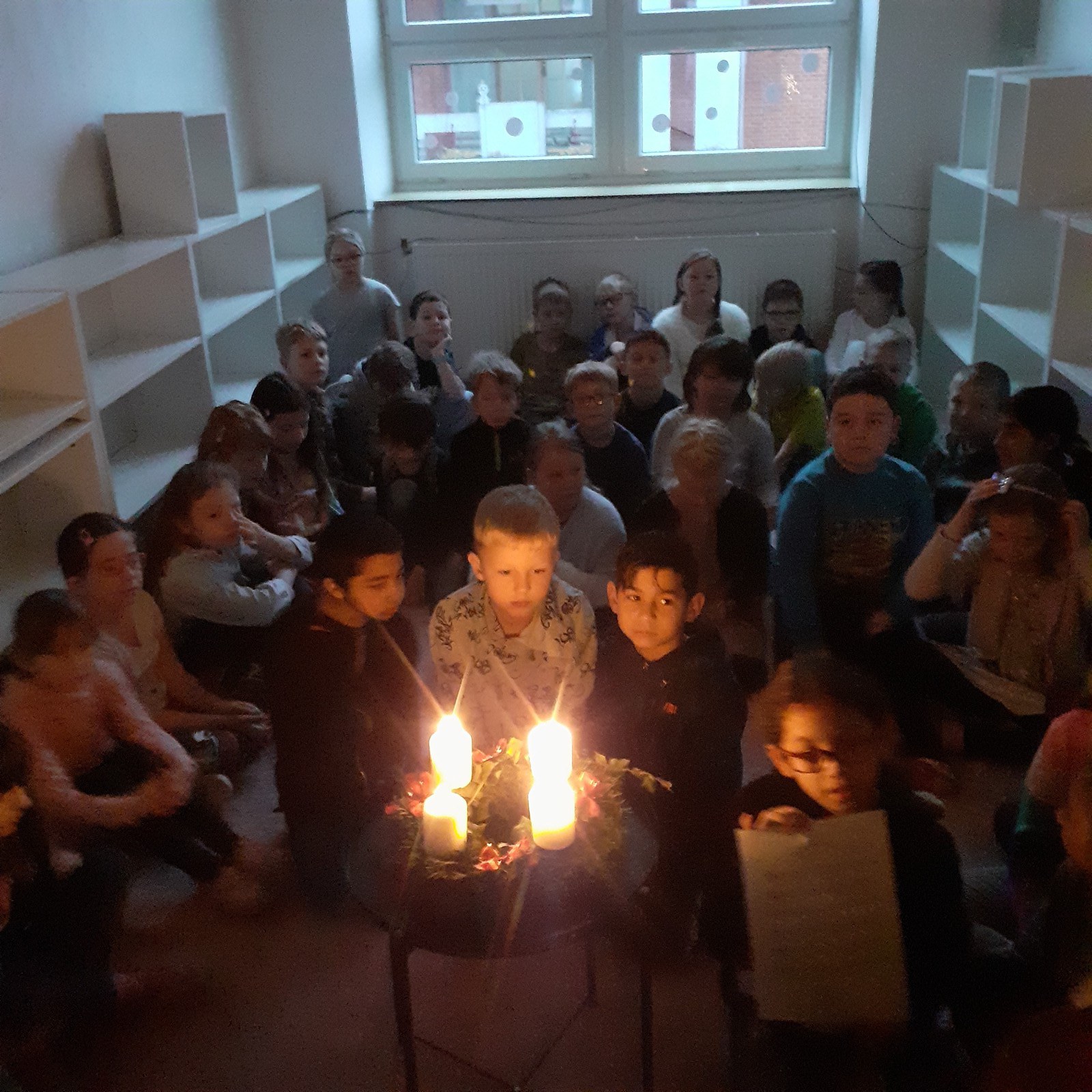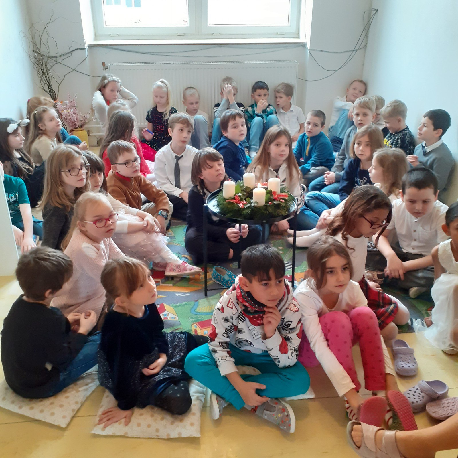 Žáci 1. – 3. třídy se po celý advent každé ráno setkávali ke společnému zahájení dne. Společně si zazpívali píseň Adventní čas a vyslechli příběh z knihy Andělé na vánoční pouti od Ingrid Biermann. Každý den na ně čekal nový příběh o jednom andělovi – každý byl jiný a přinášel téma pomoci, laskavosti nebo dobrých rad.