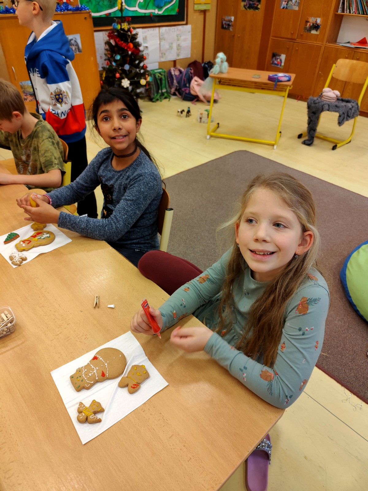 Předvánoční období bylo u nás ve škole naplněné pohodou, radostí a společnými zážitky. Žáci si užili pečení perníčků, zpívání koled i vánočně laděné vyučovací hodiny, které přinesly sváteční atmosféru do každého dne.