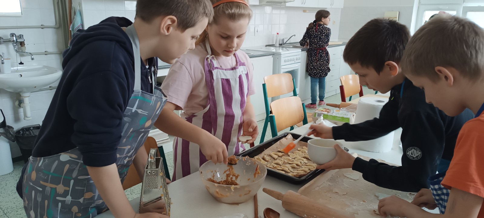 Úspěšné kroužky pokračují i ve 2. pololetí – žáci si užívají vaření a pečení 🍰, sportování ⚽, hravou výuku angličtiny 🇬🇧, šachy ♟️ i tvoření z různých materiálů, zejména ze dřeva a keramiky.