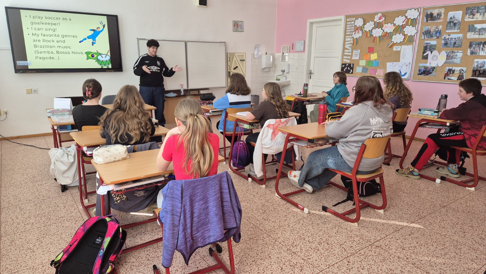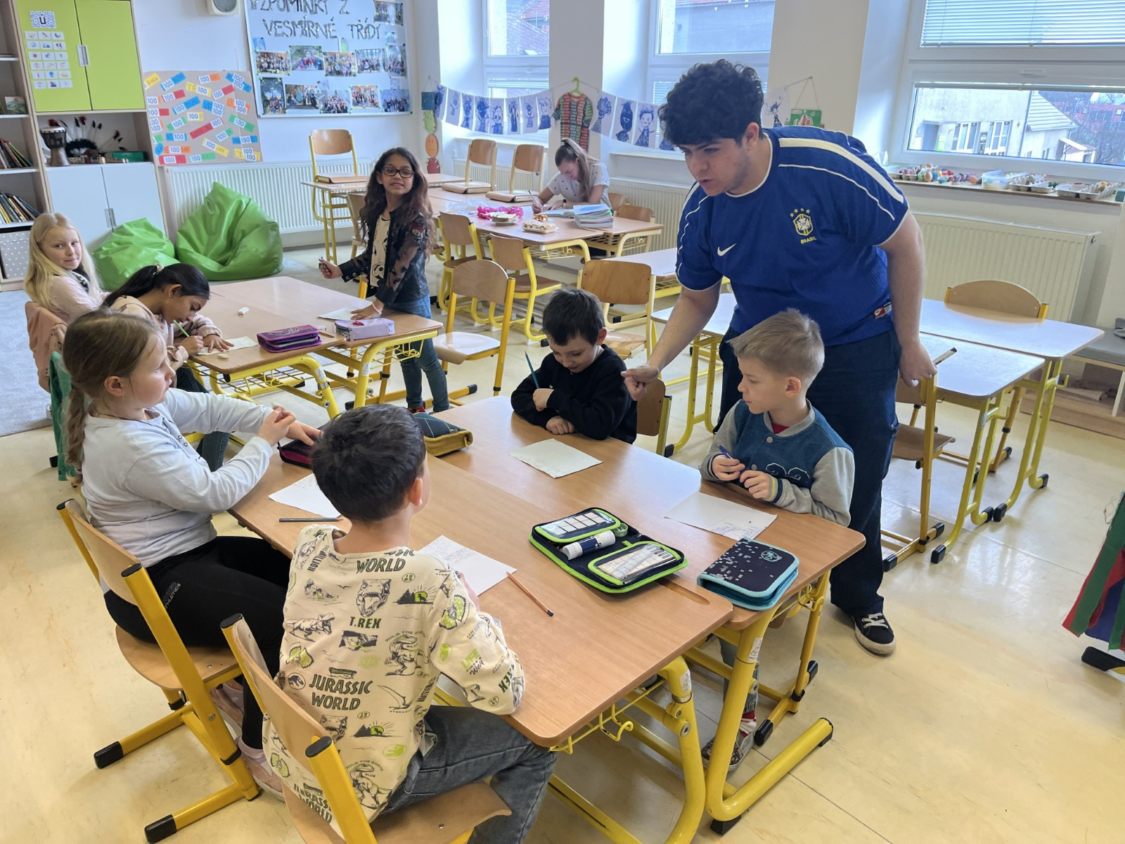 V uplynulém týdnu jsme na naší škole přivítali zahraniční studenty v rámci mezinárodního projektu Youth 4 Impact, který podporuje mezikulturní porozumění a komunikaci v angličtině. Naši školu navštívili vysokoškolští studenti: Rio z Jižní Koreje 🇰🇷, Samuel z Brazílie 🇧🇷 a Diego z Taiwanu 🇹🇼. Během týdne navštívili všechny třídy, připravili pro žáky různé aktivity a v naší škole tak často zněla angličtina 🇬🇧.