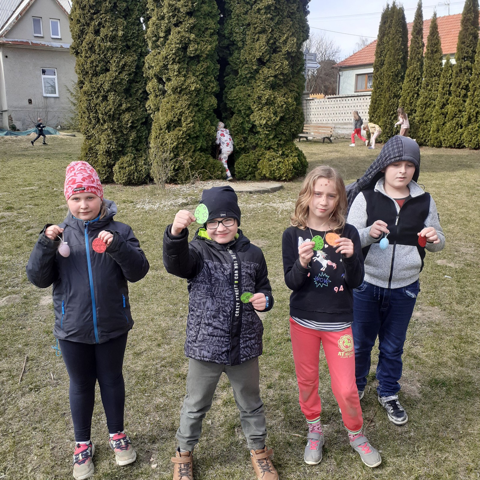 Děti se ve skupinách vydaly plnit různé úkoly a luštit tajenku, při které si zábavnou formou procvičily znalosti o jarních květinách, zvířatech, svátcích i jarních měsících. Po splnění úkolů jsme se přesunuli na školní zahradu, kde proběhla velká pátrací hra. Děti s nadšeních hledaly velikonoční vajíčka a užily si spoustu zábavy. Na závěr všechny čekala sladká odměna. Jarní akce se velmi vydařila a už teď se těšíme na další.