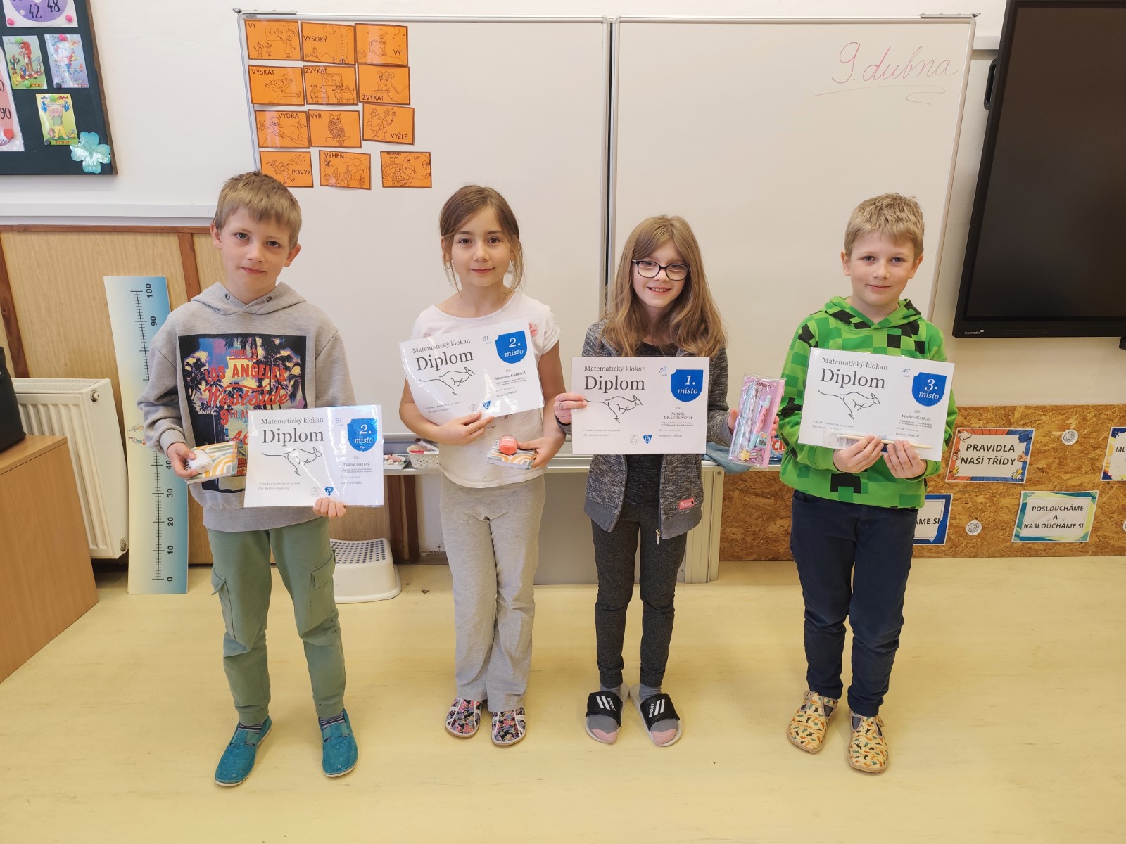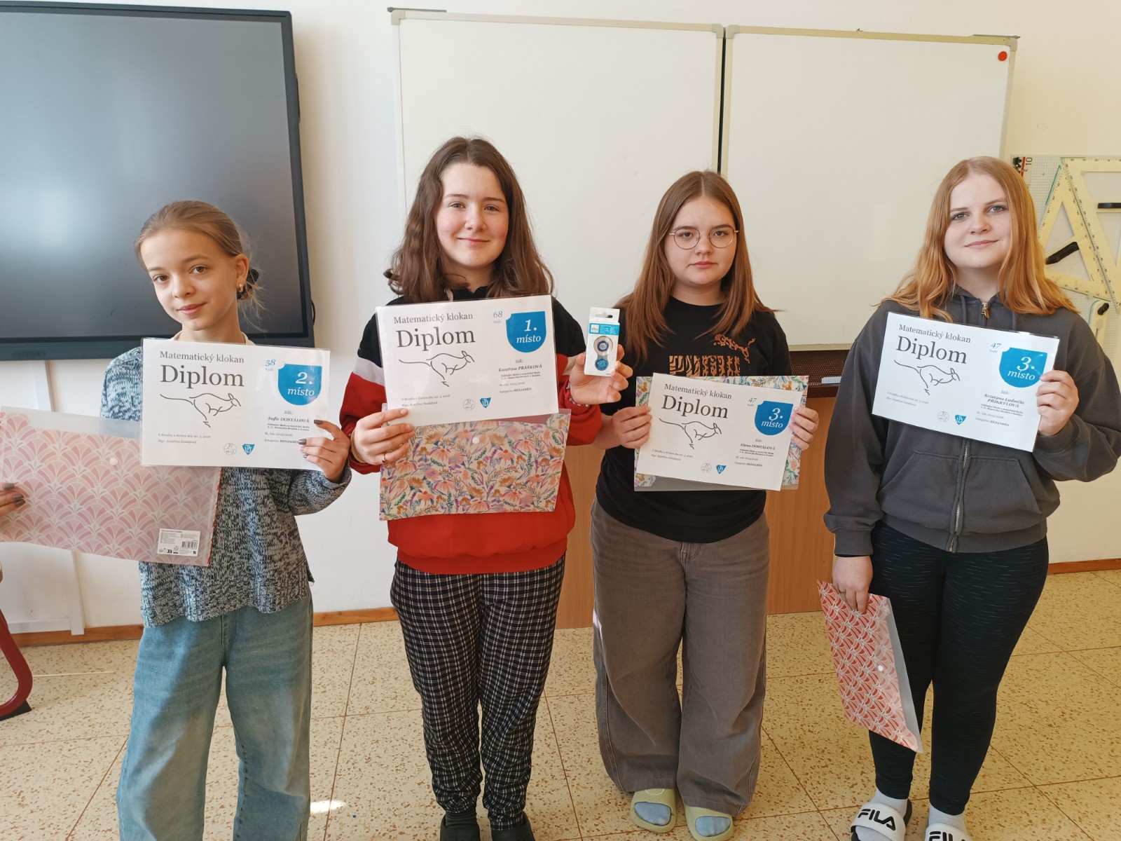 Dne 19. března 2026 se na naší škole uskutečnila oblíbená matematická soutěž Matematický klokan. Do soutěže se zapojili žáci od 2. do 9. třídy, kteří poměřili své znalosti a logické myšlení ve čtyřech kategoriích. Všichni soutěžící se s úlohami poprali se zaujetím a mnozí dosáhli velmi pěkných výsledků. Děkujeme všem za účast a gratulujeme úspěšným řešitelům.