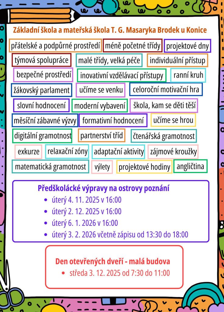 Přijďte se podívat, jak to u nás vypadá a co by vás mohlo v 1. třídě čekat. Zváni jsou budoucí prvňáčci z blízkého i vzdálenějšího okolí! Přijďte se prostě jen podívat! Těšíme se na vás 🙂